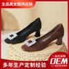 Square head single shoes women's thick heel spring new rhinestone shallow high heels