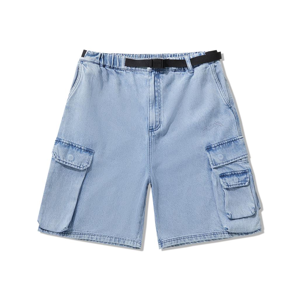 Li Ning Skateboard Series Vintage Wash Mid-Rise Loose Straight Denim Shorts Men shorts Light-Blue-Denim AJSU015-1