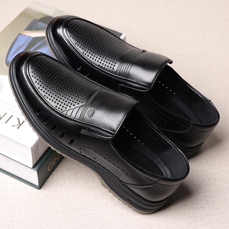 Leather sandals men's 2025 summer breathable hollow men's cool leather shoes middle-aged and elderly hole leather shoes 2025