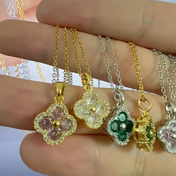 Náhrdelník Dámský Měděný Set Zirkonia Módní Lehký Luxus Senior Smysl Přívěsek Čtyřlístek Temperament Všestranný Řetízek na Klíční Kost