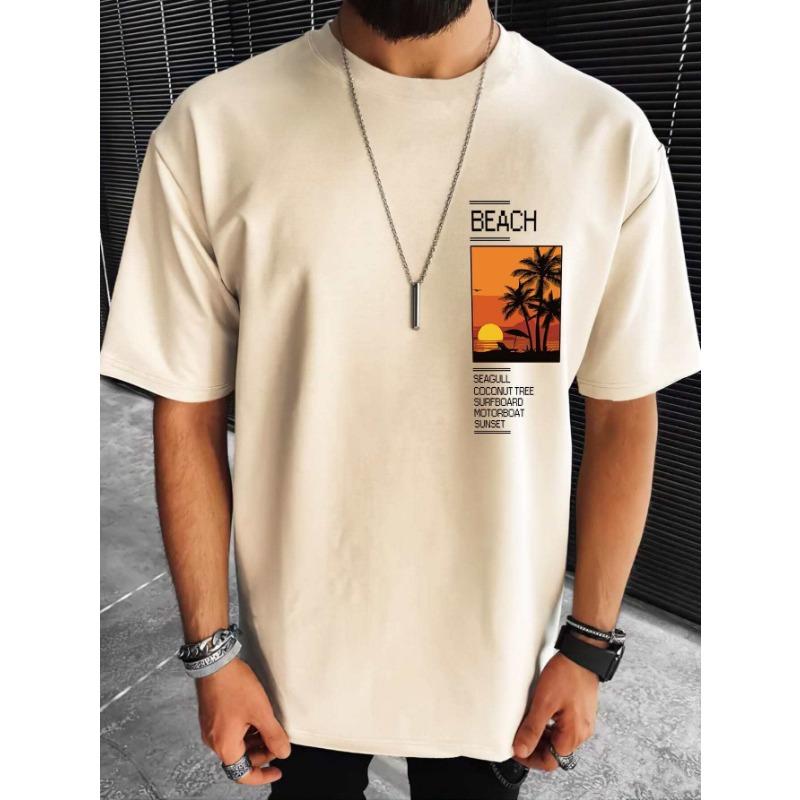 Men's 100% cotton summer loose Coconut Tree&Sloan Graphic printed slim fit casual sports round neck short sleeved T-shirt top