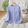 Crew Neck Top Women's New Korean Version Fashion Loose and Thin Fungus Edge Pure Cotton Shirt