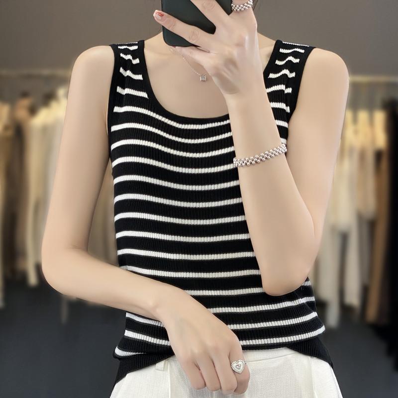 U-neck Striped Tensile Knitted Vest for Women In Summer, Suspender Inner Wear, Design Sleeveless Top