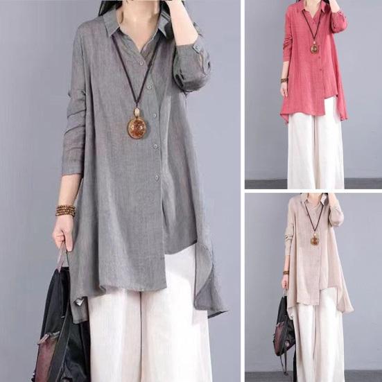 Všestranný styling: Běžný střih této košile vyhovuje různým typům postavy a nabízí ležérní, ale módní vzhled, který lze bez námahy kombinovat s ležérními kalhotami, sukněmi nebo džínami pro všestranné možnosti outfitu.