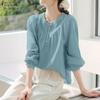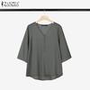 ZANZEA Dámská ležérní jednobarevná volná halenka s V-výstřihem a dlouhým rukávem