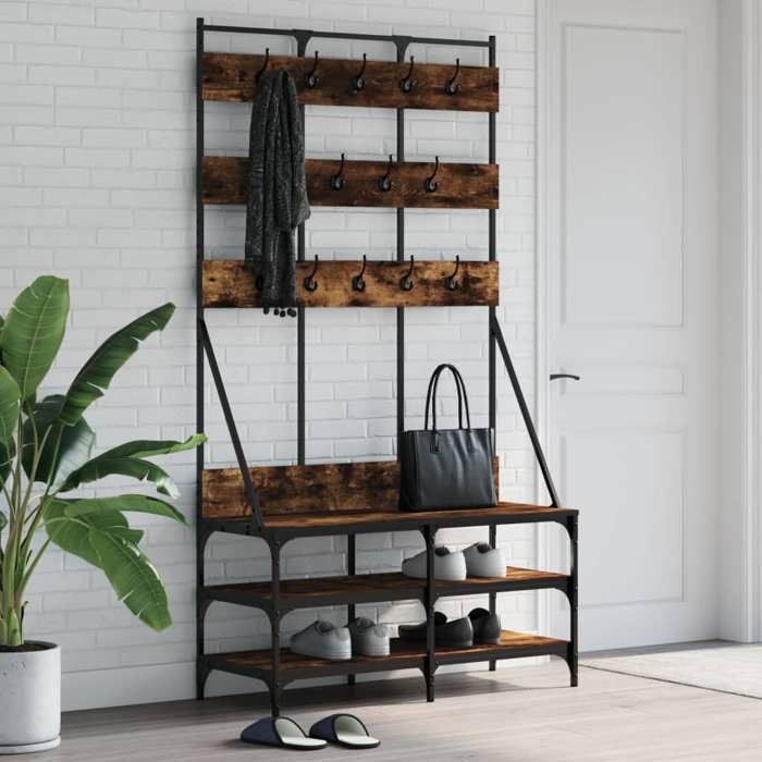 VidaXL Porte-vêtements et rangement des chaussures chêne fumé 837859