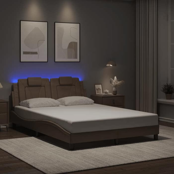 VidaXL Cadre de Lit avec Lumières LED, Lit Rembourré avec Coussin, Lit Double, Lit Adulte Chambre, Moderne, Cappuccino 3214012