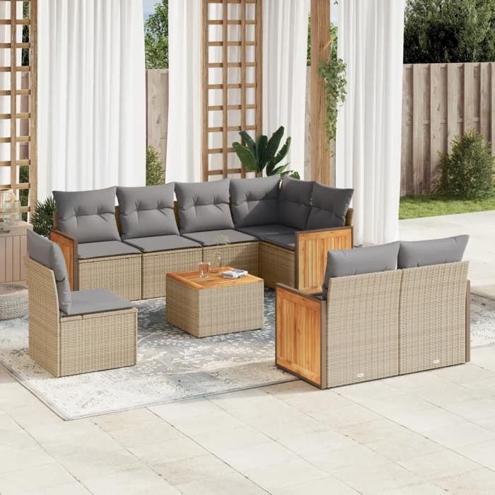 VidaXL Salon de Jardin avec Coussins 9 pcs, Canapés de Terrasse, Ensemble de Meubles de Patio, Mobilier d'Extérieur, Beige 3227851
