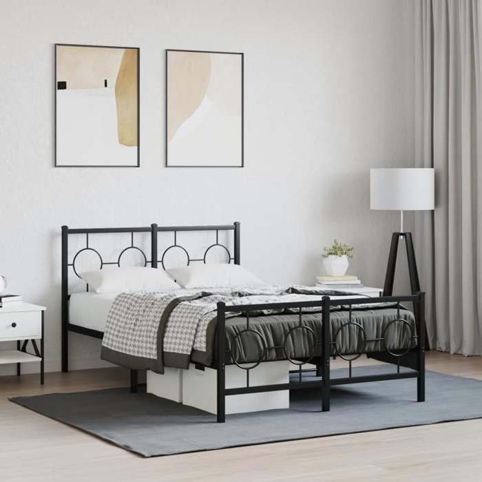 VidaXL Cadre de Lit Métal avec Tête de Lit Pied de Lit, Lit Double avec Sommier à Lattes, Lit Adulte avec Pied Chambre, 376241