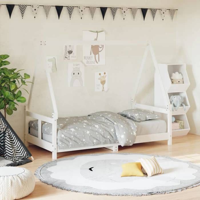 VidaXL Cadre de Lit pour Enfants, Lit Simple avec Sommier à Lattes, Meuble de Chambre à Coucher, Scandinave, Blanc 80x160 cm 834460
