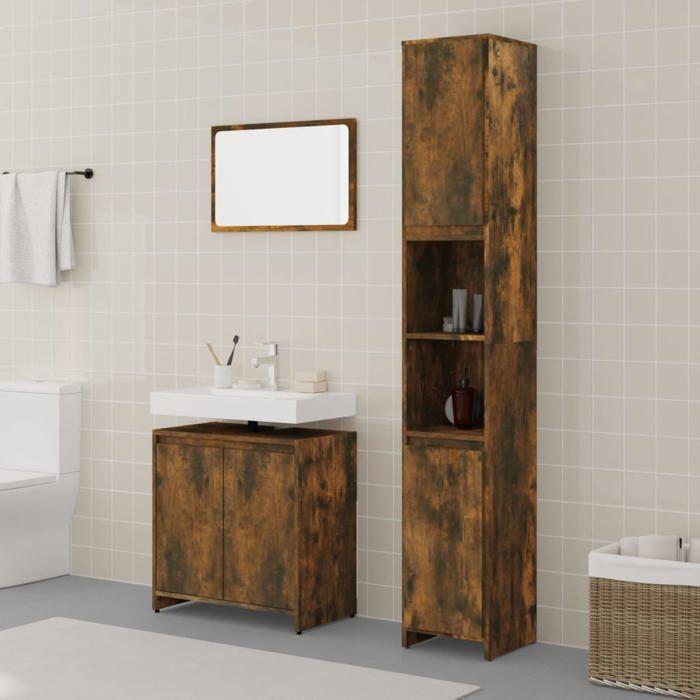 VidaXL Ensemble de Meubles de Salle de Bain 3 pcs Armoire de Rangement de Lavabo Placard de Salle de Bain Armoire à Miroir 3152719