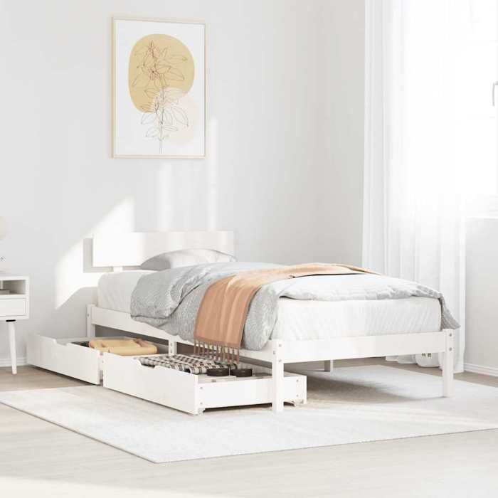 VidaXL Cadre de lit avec tiroirs blanc 100x200 cm bois massif de pin, sommier, cadre de lit simple, cadre de lit en bois 3301511