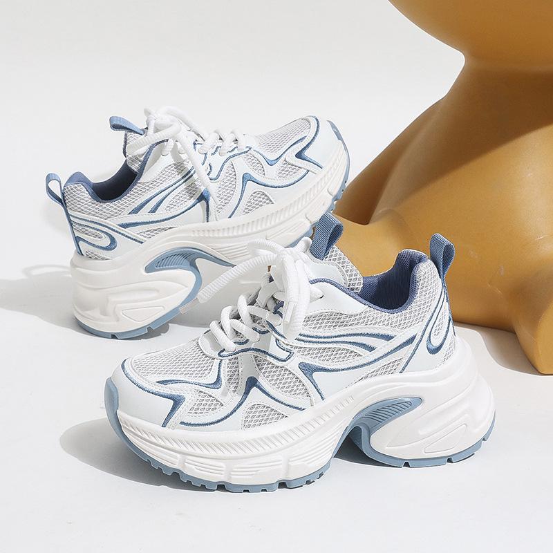Leather mesh breathable platform women's shoes summer new small height increase versatile casual shoes
