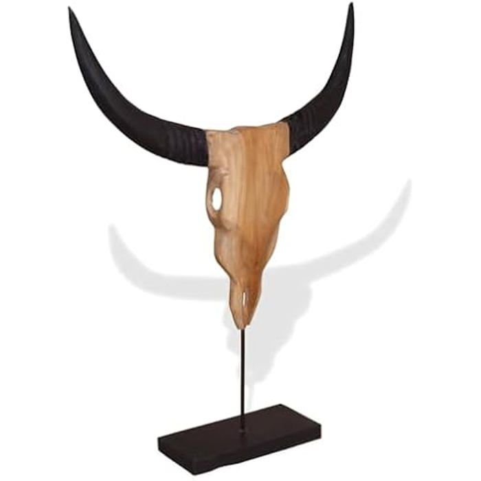 Sculpture - VIDAXL - Crâne de Taureau - Teck - 66x15x88 cm - Décoration Intérieure