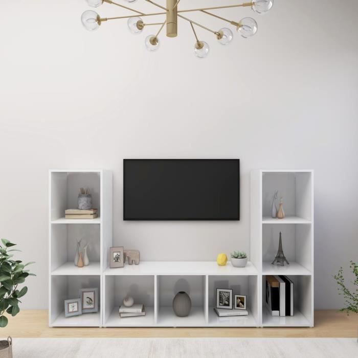 VidaXL Meubles TV 3 pcs Blanc 107x35x37 cm Aggloméré