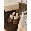 Holiday wind metal pinch square head grass woven set of toe slippers summer
