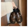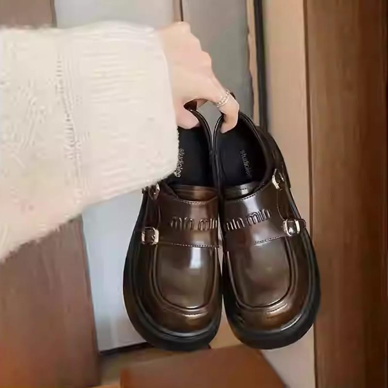! Dámské malé kožené boty Loafu s platformou, dvojitá přezka, kulatá špička, jediné boty