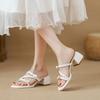 Sandals women's new one-word strap with skirt, beautiful thick heel high heel cool slippers