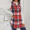 Women's Fashion Casual Tank Top Long Plaid Button-down Vest with Pocket Jacket