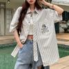 Kravata ve stylu vysoké školy Pruhovaná dámská košile Volná Všestranná Ležérní Košile s krátkým rukávem Americký Retro Jednořadá Tílka