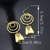 Ethnic Old Metal Round Pattern Earrings Vintage copper Color Hanging Square Carving Pattern Dangle Earrings