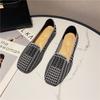 New spring and autumn flying woven single shoes Doudou woven flat bottom square head women's ladyshoes