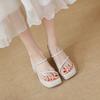 Open-toed thick-soled outer slippers women's fashion muffin one-word drag new summer transparent high-heeled fairy sandals