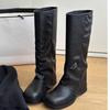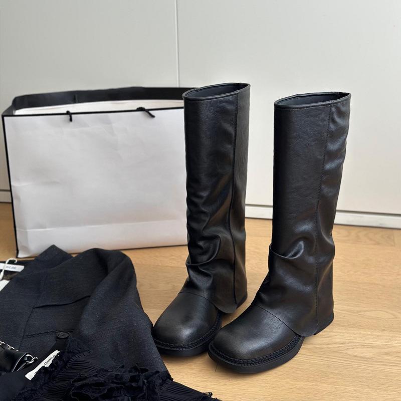 Thick-soled but knee-length boots women's autumn and winter new retro pleated stacked pants tube boots slim tall knight boots