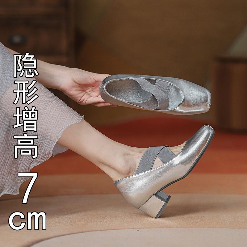 Coarse heel high heel single shoes women's new retro one-pedal small inner height increase 7cm grandma shoes