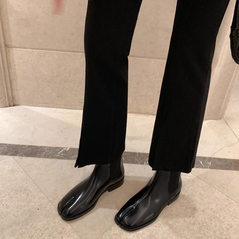 ! Shoes British leather pig's trotters split-toed thick heel Chelsea short boots women's Martin boots