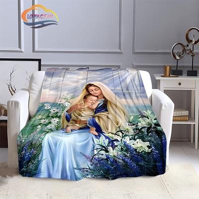 3D Printing Christ Blankets Blessed Virgin Mary Fashion Flannel Cashmere Blankets Fashion Religion Soft Bedspread Sofa Blankets