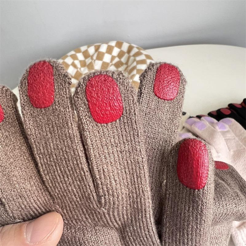 Nail polish gloves winter wool knitting solid color funny finger gloves cycling warm trendy