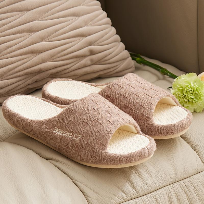 Linen slippers four seasons women's indoor home home non-slip deodorant fabric silent cotton and linen men's spring and autumn slippers men