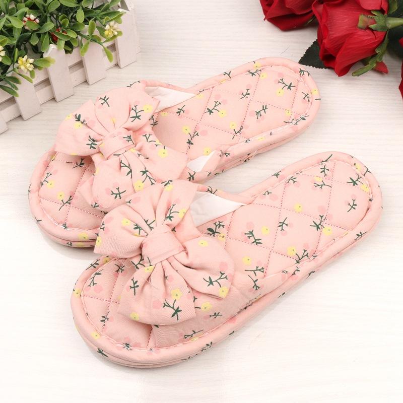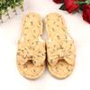 Broken flower bow women's rubber bottom three-layer thickened fabric slippers indoor wooden floor open slippers