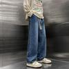 Streetwear Baggy Džíny Pánské Korejský Styl Móda Volné Rovné Široké Nohavice Pánské Značkové Oblečení Černá Světle Modrá