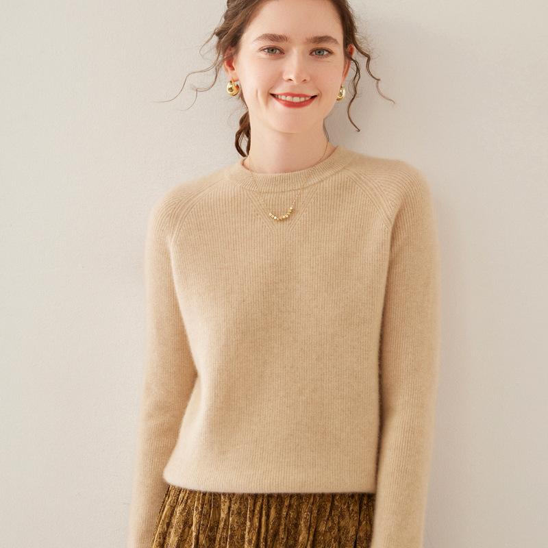 Autumn and Winter Style Ingot Needle Round Neck Cashmere Sweater for Women Lazy Warm Sweater Fashionable and Versatile Base Sweater