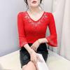 Summer Streetwear Women's Tops Shirt Elegant Slim V-Neck Hot Diamonds Mesh T-Shirt Flare Sleeve Slim Tees