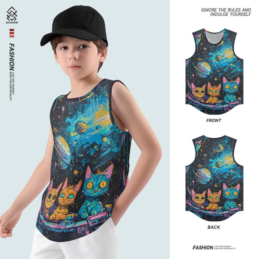 Summer Round Neck 3D Cartoon Pattern Printed Top Fashionable Casual Sleeveless Vest Children's Boy T-shirts