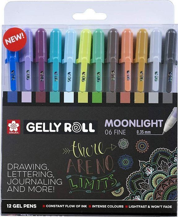 Stylos Gelly Roll - SAKURA - Clair de Lune - 0,6 mm - Ensemble de 12 - Encre gel pigmentée