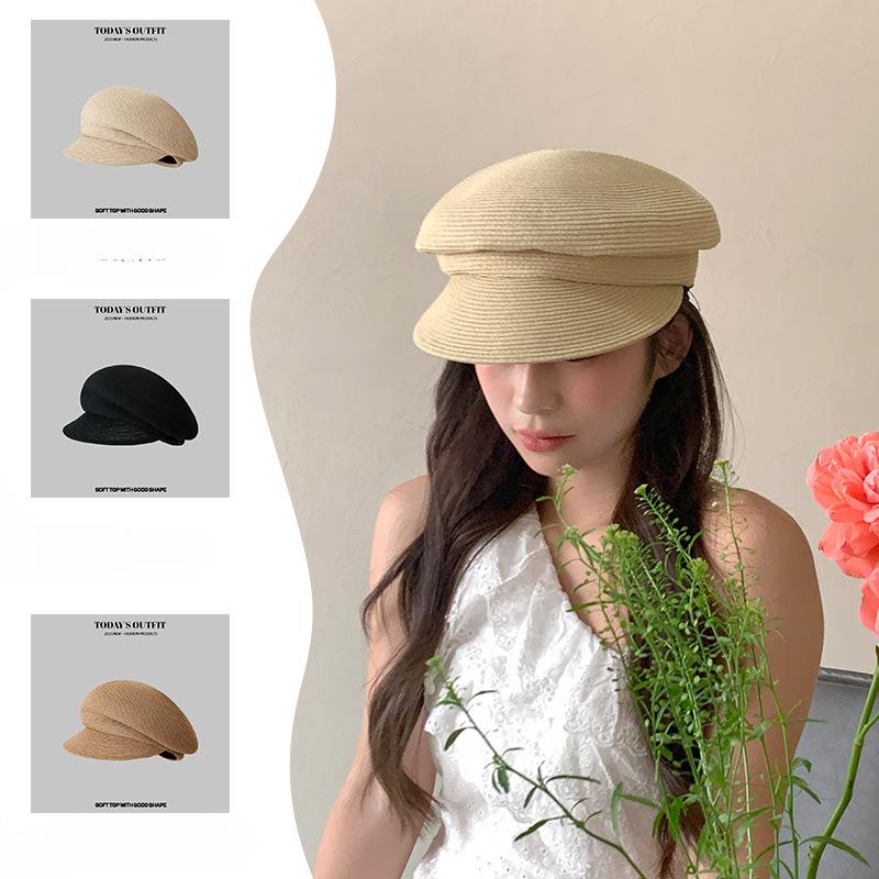 New Summer Casual Sun Protection Bere Baseball Cap Korean Version Straw Woven Wrinkled Newspaper Baby Hat Women's Star Anise Hat Trend