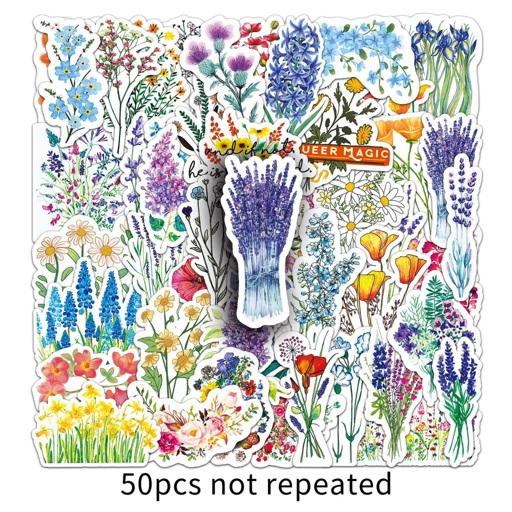 50 Flower Theme Doodle Personalized Decoration Motorcycle Suitcase Car Waterproof Stickers