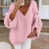 Dámská módní ležérní mikina přes hlavu s dlouhým rukávem a zimní svetr s dlouhým rukávem a výstřihem do V