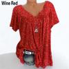 Dámské letní ležérní tričko s V-výstřihem, volné, s potiskem, s krátkým rukávem, ve větších velikostech