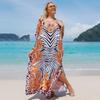 Letní tunika s potištěným tureckým županem, letní tunika na plavky velké velikosti pro dámské plavky Modré šaty Kaftan