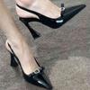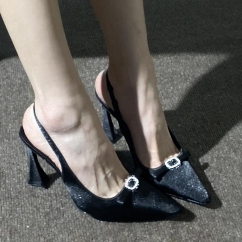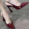 Wine Red High Heels Women's 2025 New Style Rhinestone Butterfly Knot Pointed Toe Versatile Hollow Head Sandals PU Leather Rubber