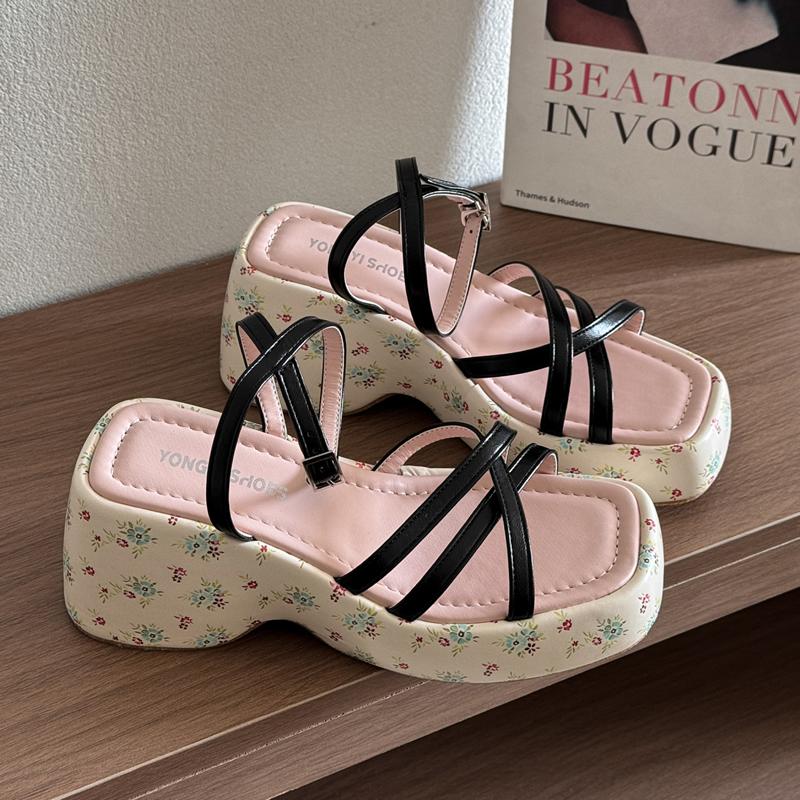 2025 Summer Women Floral Platform Wedges Heel Female Sandals Fashion Narrow Band Ladies Elegant Party Dress Gladiator Sandalias