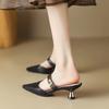 2025 Women Kitten Heels Mules Golden Rivet Pointed Toe Summer Female Sandals Fashion Beige Ladies Casual Med Heels Shoes