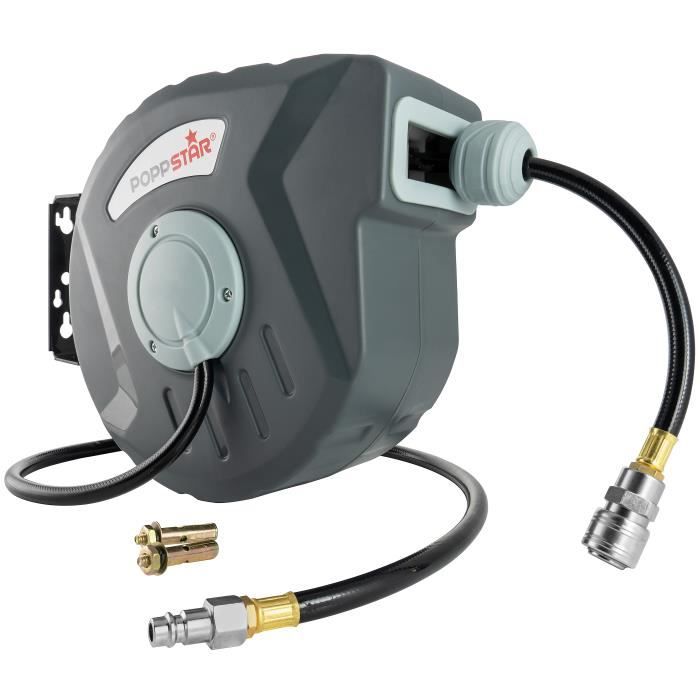 Enrouleur de tuyau à air comprimé - Poppstar - 10m + 1m - Raccord 3/8" NPT/BSPT - PVC - Polypropylène