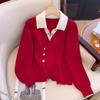 Two-piece Heavy-industrial Knitted Cardigan Casual Loose Lapel Temperament Long-sleeved Sweater Shirt