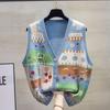 Velká vesta Velká velikost Podzimní Ženy Svetry s květinovým potiskem Pletení Výstřih do V Módní Knoflíky Oversize Základní Ležérní styl Volný svetr Kabát